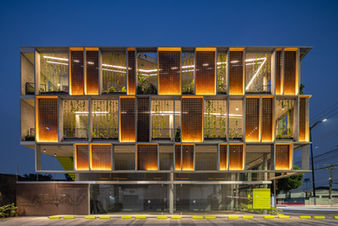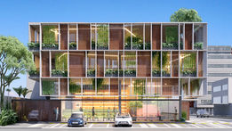 Localizado em Manaus, o edifício VIPE 201, estruturado em apenas 6 pilares com seu grande brise em concreto, sombreia a luz do sol e viabiliza o uso planos de vidro, que recuados e protegidos da insolação, delimitam os espaços internos, mas sua transparência articula a constante comunicação visual entre o dentro e o fora, a cidade e o edifício. Se fazendo presente em usuário, vegetação e cidade, através do tempo, da sombra, da vegetação e seus desdobramentos.